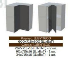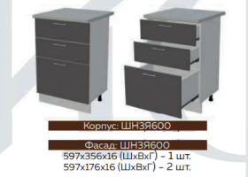 Глубина нижних шкафов без учета столешницы:506 мм, с учетом столешницы 600 мм