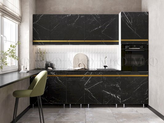 Модульная кухня Милена Мрамор Блэк софт/Мрамор белый софт (Миф)