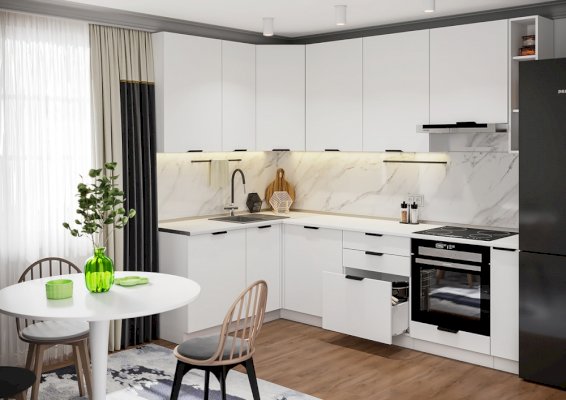 Высота кухонного гарнитура изменяется в зависимости от вашего варианта установки.
