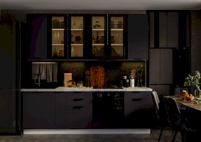 Материал фасада: МДФ 16 мм, Стекло 4 мм тонированое (Софт черный)
