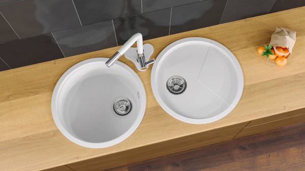 Кухонная мойка Spring служит дополнением к сету круглых моек. Малая глубина чаши и антибактериальная поверхность идеально подходят для сушки посуды и продуктов.