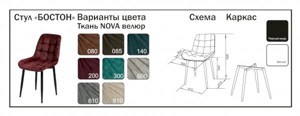 Стул Бостон (Mister Chair) – товар доступен к покупке в интернет-магазине dommebeli-v-moskve.ru. Цена – 5 881 руб. без учета доставки. Стоимость дополнительных услуг и сроки получения мебели уточняйте у менеджера. Возможен безналичный расчет, оплата по карте на сайте.
